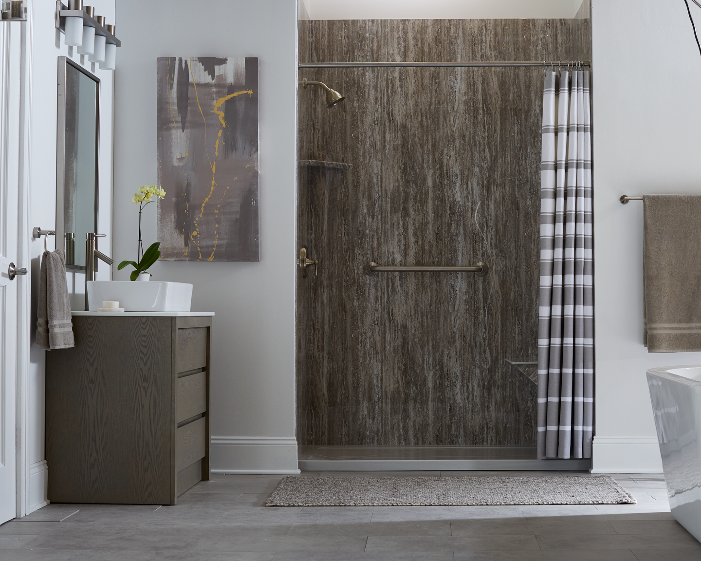 The process starts by filling out the form at the top of this page. Your local Jacuzzi Bath Remodel representative will contact you and schedule a Free Design Consultation at a time that is most convenient for you. They will go to your house to understand your design vision and craft a unique space for you, showcasing samples of all Jacuzzi® branded products, from walls to bases, to fixtures and accessories. Finally, a certified Jacuzzi Bath Remodel installer will transform your bathroom in as little as one day.